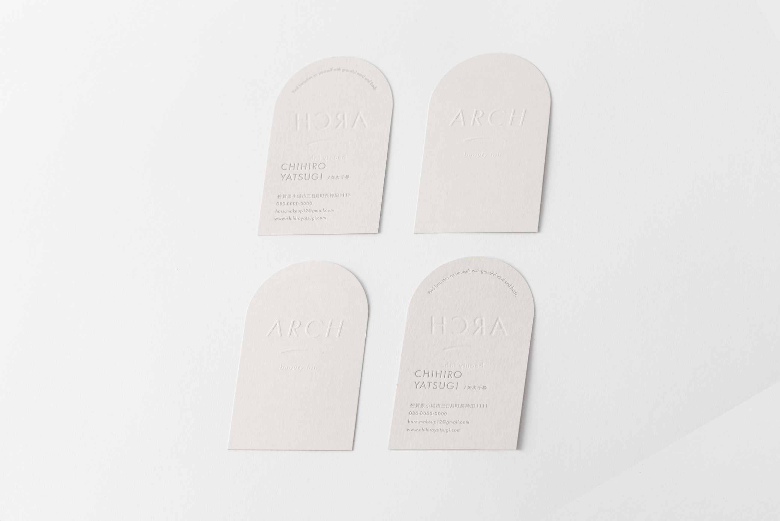 Her makeup draws out a person’s true essence from within.Reflecting Chihiro’s style, we chose a soft-toned grayish-beige paper with her studio name embossed to stand out.